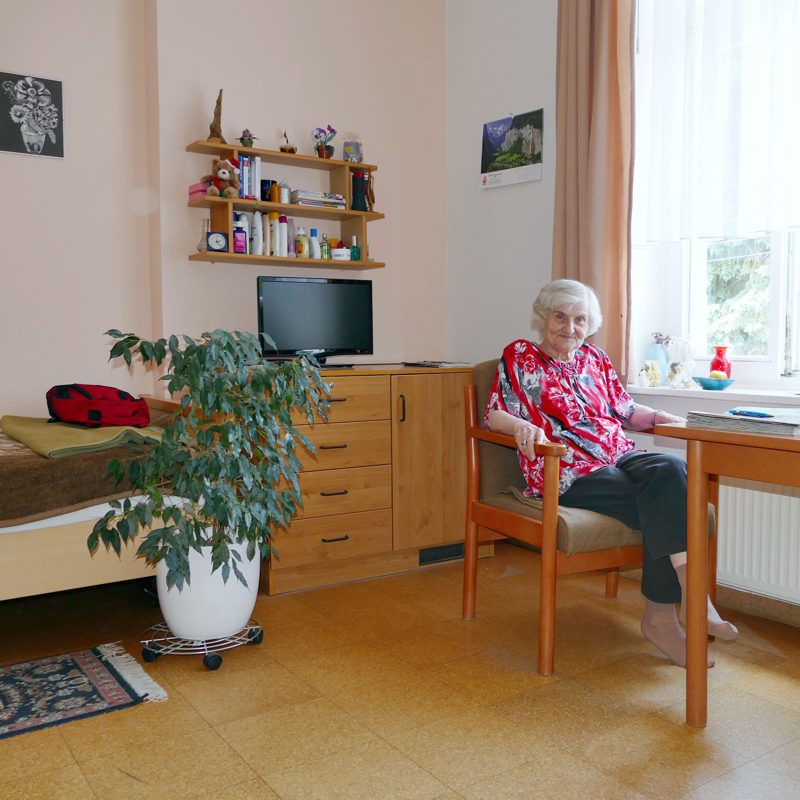 - Zimmer mit Nasszelle (Dusche, WC), Schwesternrufanlage und TV-Anschluss